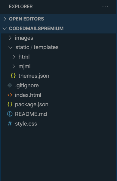You can clone or download the complete CodedMails repository on GitHub. After downloading, open the folder in your favorite code editor (e.g., VS Code).